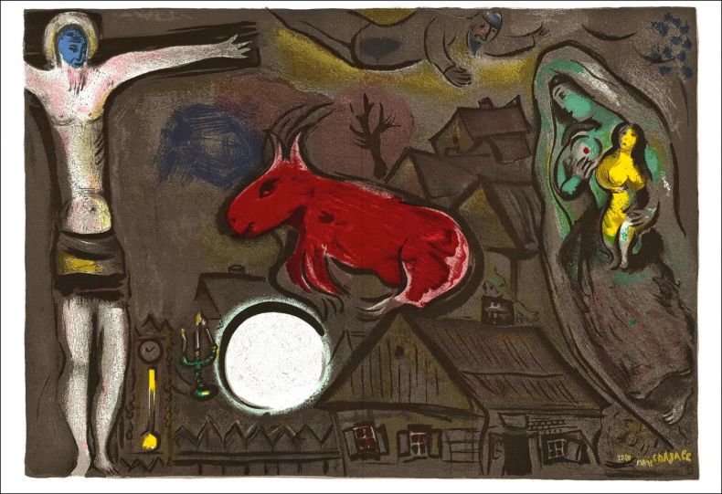Marc Chagall is known to have been greatly inspired by biblical themes in his works, including the figure of Christ, whom he himself identified with. The stained-glass window above was a study for the Cathedral in Metz in 1959.